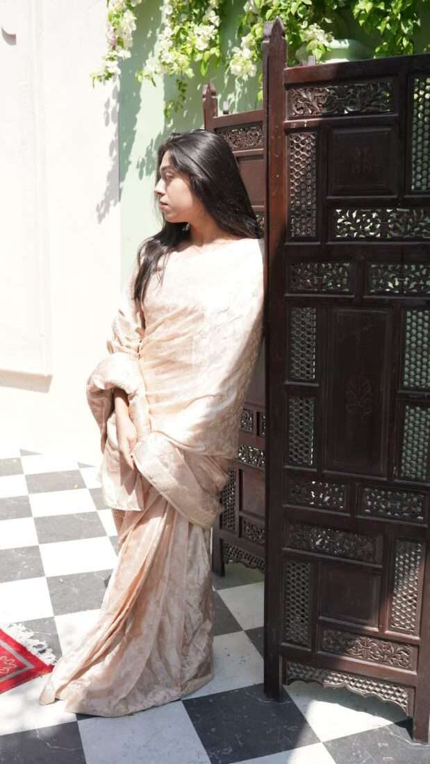 Color: Soft Champagne Gold with Subtle Zari Accents