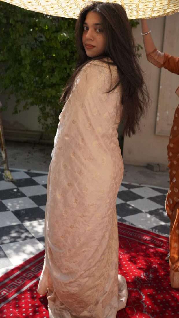 An ode to timeless royalty, Zarminah Gold is a graceful silk jamawar saree that radiates understated elegance. Woven with delicate gold zari motifs, its soft champagne tone flatters every skin tone and evokes classic sophistication. Ideal for festive evenings, wedding functions, or refined daywear, this piece adds a subtle glow to any occasion